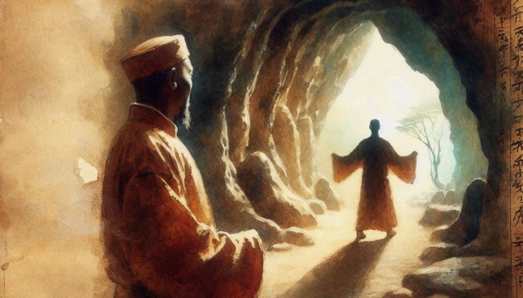 Imagine a serene warrior navigating through a chaotic battlefield, seeking refuge and wisdom in an unassuming cave. What secrets might it unveil? This mystery beckons us to explore the art of finding order in chaos.