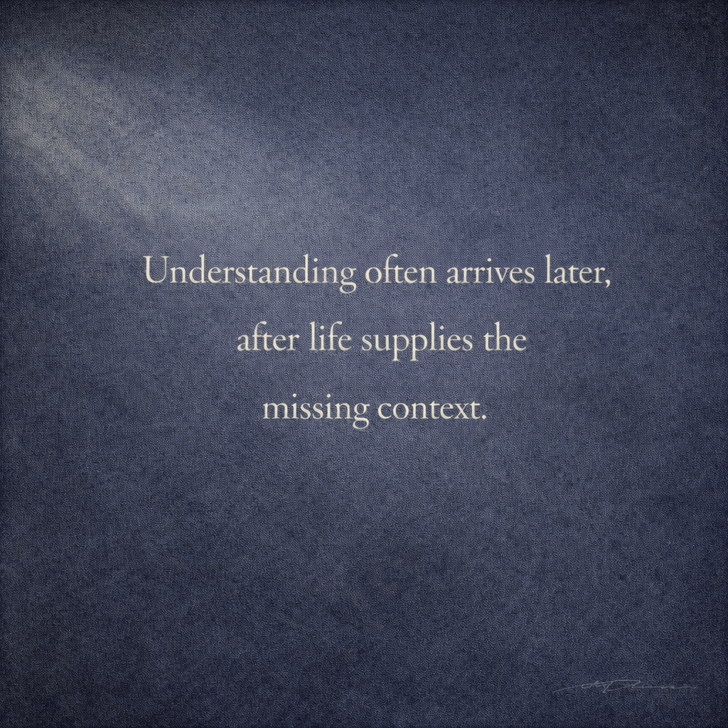 Dense or ancient language often hides practical wisdom, not because the author wanted to sound elevated, but because certain truths cannot land until life supplies the missing context. When that context finally arrives, something subtle happens: the ideas simplify. You find yourself explaining them clearly, even casually, because you no longer defend them—you recognize them.