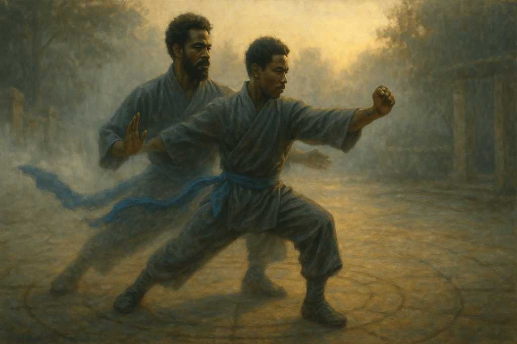 Morning smog settled over the park like a silken veil, blurring the lines of the open field and turning it into an intimate classroom. The space let posture speak louder than intention, and mistakes surfaced without argument. I arrived early, not to mark territory but to read conditions: cool, damp air filled my lungs, stiffness lingered in my hips and shoulders, and echoes of yesterday’s work buzzed just beneath the skin. Training always begins before instruction, long before a student throws the first punch or asks the first question.