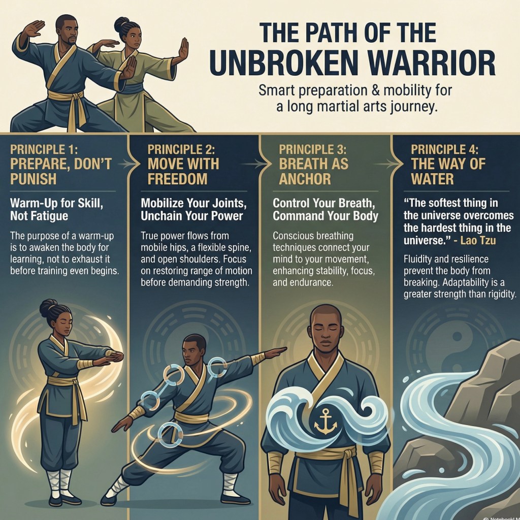 .A martial arts warm-up exists to prepare the body and the attention so training can happen safely, clearly, and with intention. It does not exist to exhaust students. Fatigue belongs elsewhere. Skill requires freshness. This distinction appears again and again in classical sources. The Tao Te Ching reminds us: