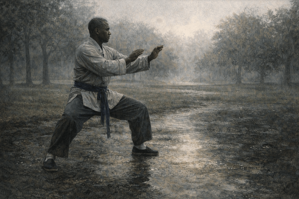 The passage’s line about letting the “flexibility and grace of yoga, tai chi” replace the “power of lifting at the gym” reads best, to my mind, as an invitation to rebalance rather than a command to abandon strength. Strength matters, and grace keeps strength usable. Power matters, and softness keeps power responsive. A martial artist doesn’t need to choose between structure and flow; a martial artist needs both, because structure without flow turns into armor that restricts the wearer, and flow without structure turns into drift. Tai Chi doesn’t remove power; it trains power to arrive without strain. Yoga doesn’t erase resilience; it teaches resilience to live inside length, space, and breath. When we train with attention instead of ego, with alignment instead of aggression, with breath instead of bracing, we practice the very non-resistance the passage recommends. We stop fighting the body we carry today. We stop arguing with time. We cooperate with reality while still cultivating capability.
